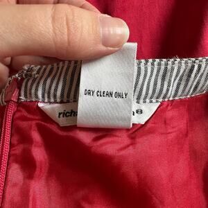 Richard Malcolm Red Cotton Dress Size 8 Embellished Floral Stripe Hem Mod Preppy