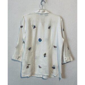Richard Malcolm Top Womens XL Button Up 3/4 Sleeve Irish Linen Embroidered
