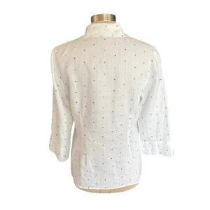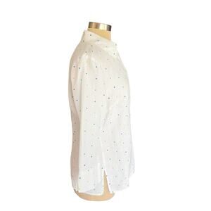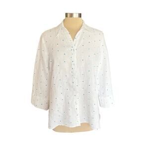 Richard Malcolm White Linen Button Down Top Embroidered Dot LARGE Preppy Coastal