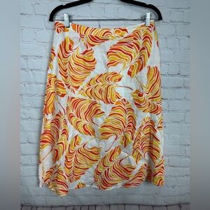 Richard Malcolm Woman's Linen midi length bright leaf print, sz 6, EUC