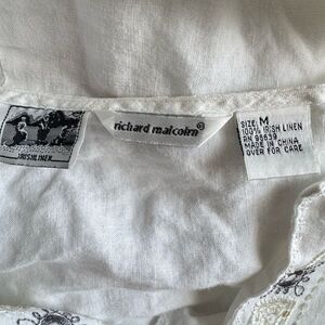 Richard Malcolm 100% Irish Linen White Embroidered Tunic Top Sz M Peasant Boho