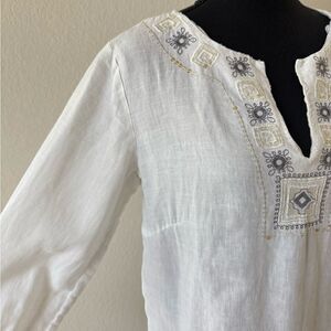 Richard Malcolm 100% Irish Linen White Embroidered Tunic Top Size M
