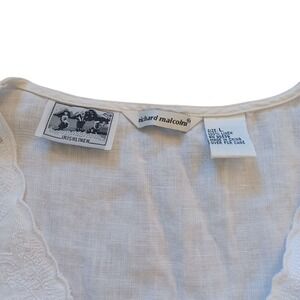 Richard Malcom Irish Linen Cap Sleeve Embellished V Neck Top Large