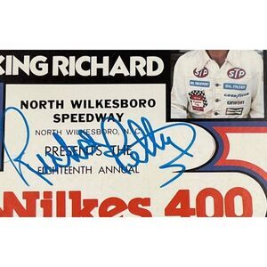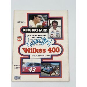 Immerse yourself in NASCAR history with this authentic 1978 Wilkes 400 program, signed by the legendary Richard Petty. The program comes with a Beckett Certificate of Authenticity, ensuring its genuine status. A valuable addition for racing enthusiasts, it captures a piece of the iconic North Wilkesboro Speedway event.