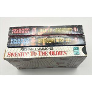 This Richard Simmons VHS fitness set includes "Tone Up On Broadway" for toning exercises, "Broadway Blast Off" for energetic cardio routines and "Sweatin to the Oldies" for pure enjoyment. All tapes are designed to offer a fun, theatrical workout experience suitable for all fitness levels. Perfect for collectors or those seeking engaging retro exercise programs. Elevate your workouts with Richard Simmons' entertaining and motivational exercise guidance!