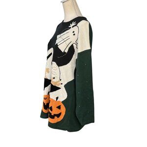 Richard Sport Halloween Ghost Cat Pumpkin Graphic Knit Velvet Applique Size M