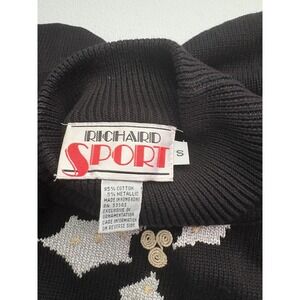 Richard Sport Sweater Small Black Holiday Holly Christmas Mock Neck Knit