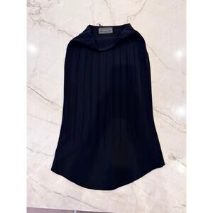 Vintage tailored Richard Tyler Couture black wool blend asymmetrical pintuck skirt size 6. Hem is higher in the back than the front. Just enough stretch to make it comfy and very figure flattering! In perfect condition & perfect for fall! 96% wool, 4% Lycra. Fitted through the waist & hips, slightly fit & flare. Size 6. Approximate measurements: