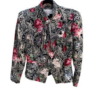 Richard Warren Petites Vintage Floral Print Long-Sleeve Tie Neck Peplum Blazer 2