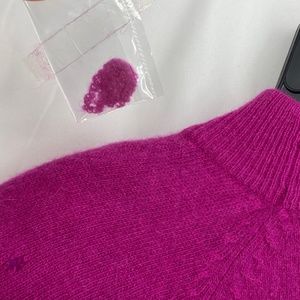 70% lambswool, 20% Angora rabbit hair, 10% nylon - soft and a little bit fuzzy knit fabric - fuchsia pink - hand wash or dry clean