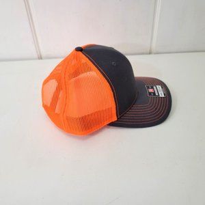 Gray cap with orange mesh back. It still has the paper label on the bill.