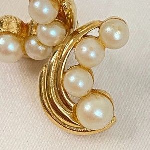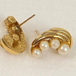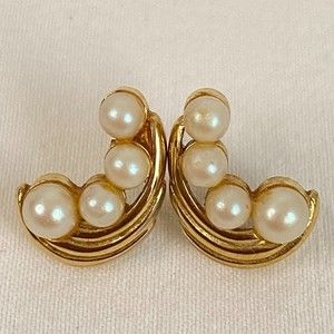 Richelieu Earrings Four Faux Pearls On A Gold Tone Semicircle