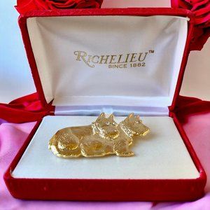 Richelieu gold-tone Scotty dog brooch pin in original box.