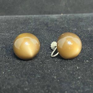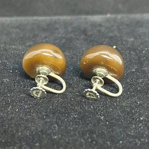 Vintage Richelieu Sterling Silver Brown Lucite Moonglow Dome Button Screw Back Earrings. They are signed Richelieu Sterling.