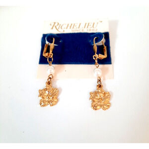 Richelieu Vintage Flower Faux Pearl Gold Tone Lever back Pierced Earrings