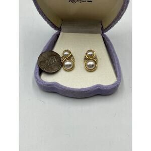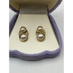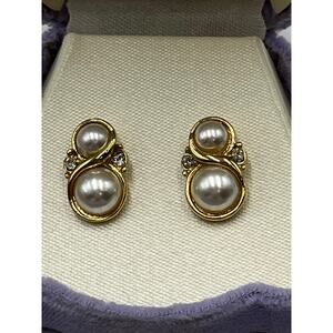 Richelieu Vintage White Faux Pearl Gold Tone CZ Gold Tone Earrings Gift