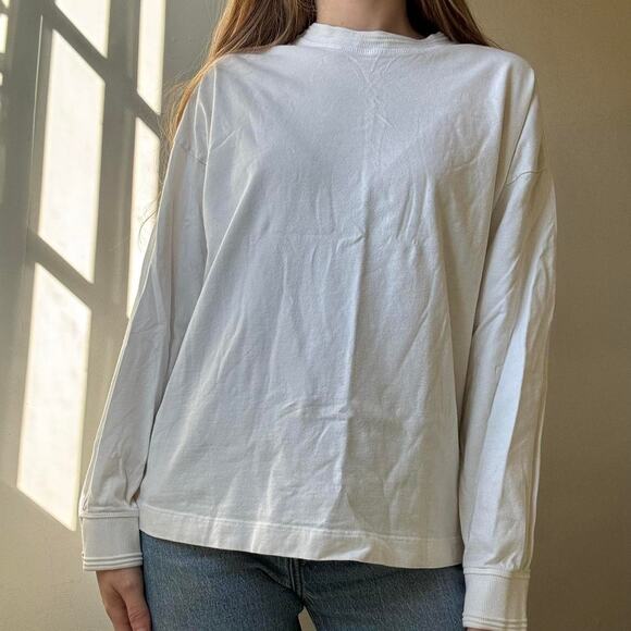 Richer Poorer Relaxed Plain White Long Sleeve T-Shirt Small Cotton