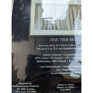 The Richloom Home Fashions Light House Nautical Embroidered Tier Set is a stylish and light filtering curtain set perfect for any room in the house. Featuring a nautical theme and embroidered design, these beige and blue-colored tiers are made from a blended fabric for durability and quality. The rod pocket heading makes it easy to hang these 30-inch wide by 24-inch long curtains on your window frame, adding a touch of nautical charm to your home decor. These light-weight tiers are a beautiful addition to any room.