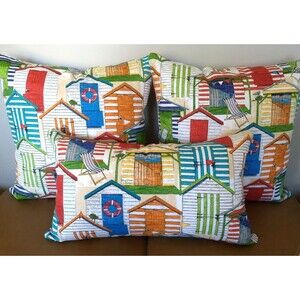Richloom SOLARIUM BEACH HUTS 14X24 LUMBAR OUTDOOR Zipper Throw Pillow Cover NEW