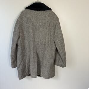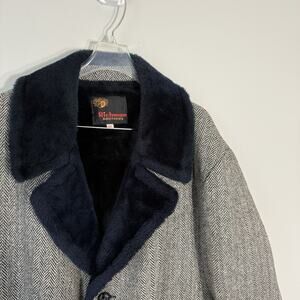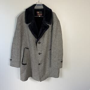 Richman Brother Vintage Fur Lined Wool Over Coat Size 44 Gray Black Herringbone jacket wool blend