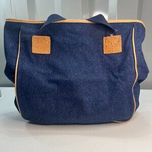 Richmark Denim Tooled Leather Trim Weekender Bag Carry-On Made in USA Vintage