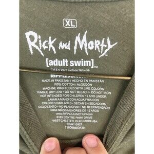 Show off your love for the popular animated TV show Rick and Morty with this limited edition graphic tee from Ripple Junction. The army green shirt features a crew neck and graphic long sleeves, making it perfect for fans of the show who want to stay warm and stylish. The shirt is made from high-quality 100% cotton and is machine washable for easy care. The shirt is designed with a regular fit size XL. It is perfect for any occasion, whether you're going to a school event, a Christmas party, or just hanging out with friends. The shirt is wrinkle-resistant and non-iron, making it perfect for all seasons. Add this fun and colorful tee to your collection! Will Ship to Canada Mexico Central and South America as well as most of Europe.
