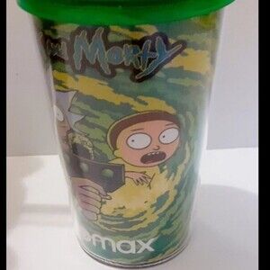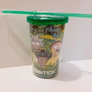 Rick & Morty HBO Max Green Tumbler 10-14 Oz with Lid & Straw NWOT
