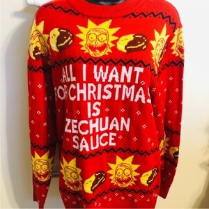 Rick & Morty Mens Szechuan Sauce Ugly Christmas Funny Sweater Size M