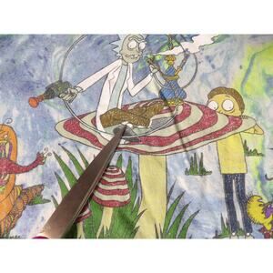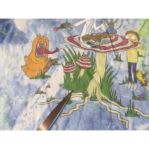 Rick & Morty Tee Shirt Adult Large Tie Dye Blue Graphic Ripple Junction Some light fading from wash wear, Slight Cracking in graphic. See photos.