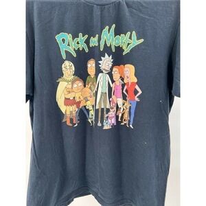 Rick & Morty Unisex Size Large T-Shirt Short Sleeve Navy Blue Cotton Adult Swim.