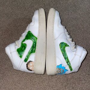 hand painted with leather paint, shoes are a little dirty but in good condition & could be cleaned up, a few imperfections in the paint as shown, laces have been cut & tied off for a slip on shoe but can easily be replaced, 6Y = 7.5W, can provide measurements if interested