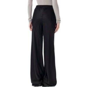 Elevate your wardrobe with the Rick Owens Concordians trousers, showcasing a floor-length silhouette crafted from a premium blend of acetate and viscose. The luxurious black fabric features a smooth, slightly shiny finish, emphasizing the unique bias cut and diagonal seam details. Designed with an elastic waistband and contrasting drawstring, these trousers offer both adjustable comfort and refined style for any casual occasion.