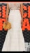 THIS GODET SKIRT IS A FLOOR LENGTH HIGH WAISTED 5 POCKET JEAN SKIRT. IT HAS A WAISTBAND WITH BELT LOOPS AND POCKET RIVETS, A CONCEALED ZIP FLY, AND TAN LEATHER PATCH ON THE REAR RIGHT HIP. THE SKIRT IS MADE FROM THE FLATTENED PANELS OF THE JEAN LEGS, WITH GODETS INSERTED IN THE CENTRE FRONT AND BACK TO CREATE A FISHTAIL SHAPE. IT HAS A RAW CUT HEM AND DOUBLE TOPSTITCHED SEAMS