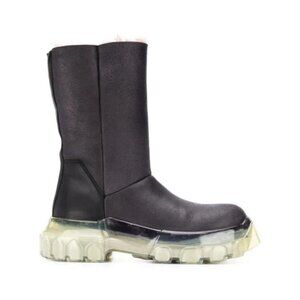 Rick Owens Shearling Mega Bozo Tractor Chelsea Boots in black.