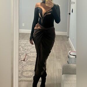 Rick Owens Women's Brown Raw Hem Drape Wrap Midi Skirt