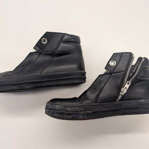 RICK OWENS ISLAND DUNK IN BLACK / BB E16 2534/ LPO CALF LEATHER SNEAKERS. ARE LACELESS WITH A SIDE ZIPPER FOR EASY FASTENING, TWO LARGE EYELETS, HOLE DETAILS IN FRONT AND RUBBER SHARK-TOOTH SOLES.