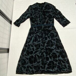 Rick Rhe Handmade Italy Silk Velvet Devore ¾ Sleeve Lined High Neck Ruffle Dress