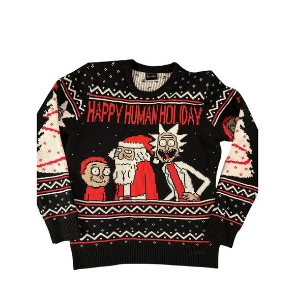 Rick and Morty Happy Human Holiday Sweater Adult M Ugly Christmas Cartoon Knit