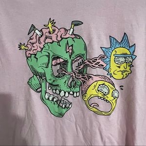 Rick and Morty Shirt Adult Small Short Sleeve Tee Pink Skull Crew Adult Swim