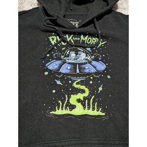 Rick and Morty Sweater Men Sz Small Black Hoodie Spaceship Dumping Pull Over. Condition is Pre-owned - Excellent. Shipped with USPS Ground Advantage.