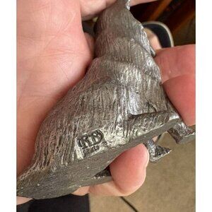 The product is a vintage Pewter Collie Dog Figurine handcrafted by Ricker Bartlett, measuring 2.5 inches in size. Made in the United States, this intricate figurine showcases the artistry and craftsmanship of the artist. The pewter material adds a classic and elegant touch to this collectible piece, perfect for dog lovers or collectors of metalware.