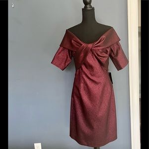 Brand new never worn Ricki Freeman for Teri Jon off the shoulder dress. Extremely flattering and unique with the sleeves. The fabric gorgeous with a bit of a shimmer woven into it.