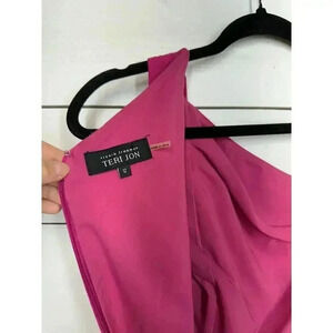 Ricki Freeman Terri Jon 12 (XL) Pink & Red One Shoulder Ruffle Above Knee Dress