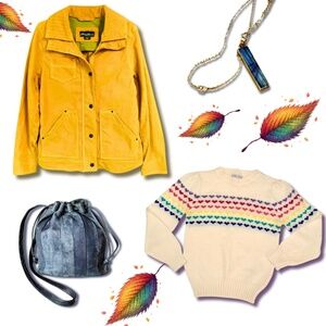 Playful 80s rainbow knit with sweet puff-shoulder detail — a nostalgic yet timeless layer for fall and beyond.