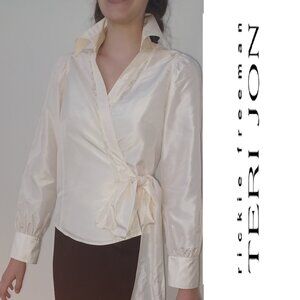 Rickie Freeman Teri Jon 100% Silk Cream Blouse