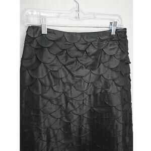 Rickie Freeman Teri Jon Black Silk Scalloped Knee Length Women's Skirt Size 6