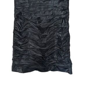 Elegant and timeless, this Rickie Freeman for Teri Jon black taffeta dress features a flattering ruched design, delicate spaghetti straps, and a curve-enhancing silhouette. Perfect for cocktail parties, black-tie events, weddings, date nights, or any formal occasion.