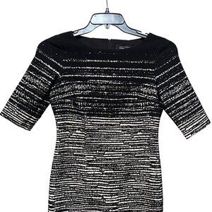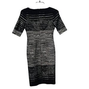 Rickie Freeman Teri Jon Black White Stripe Short Sleeve Wool Fitted Dress Sz 8