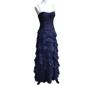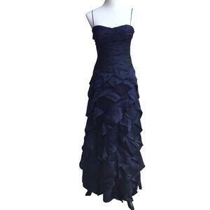 Rickie Freeman Teri Jon Blue Layered Silk Evening Gown