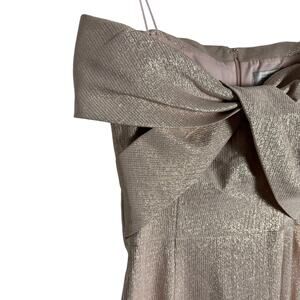 Rickie Freeman Teri Jon Ice Pink Metallic Twist Front Off Shoulder Gown Size 8